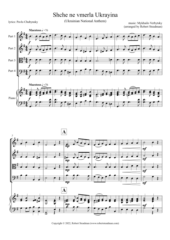 Shche ne vmerla Ukrayina (Ukrainian National Anthem) - FLEXIBLE 4-PARTENSEMBLE - Score & Parts inc. (arr. Robert Steadman)