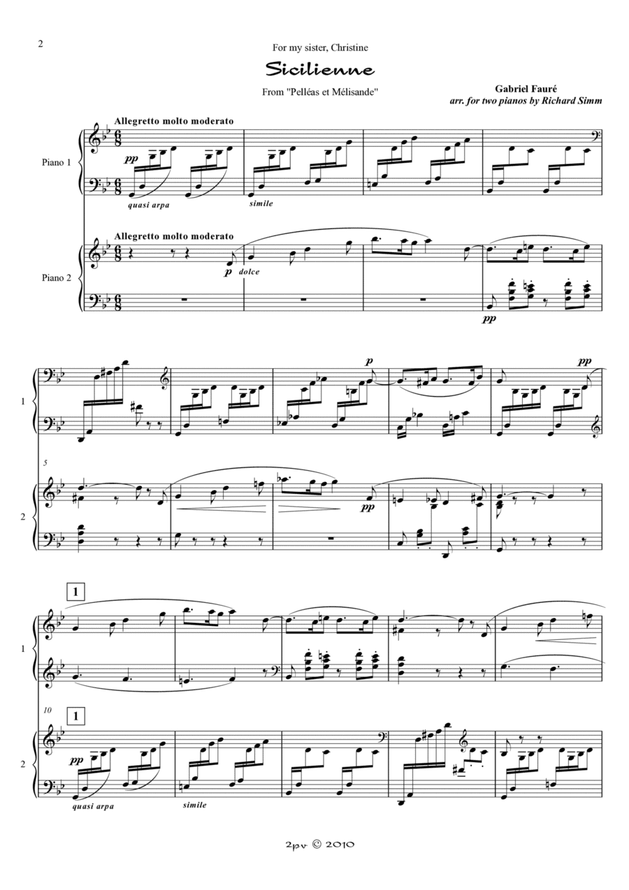 'Sicilienne' from 'Pelléas et Melisande', for 2 pianos (arr. Richard Simm)