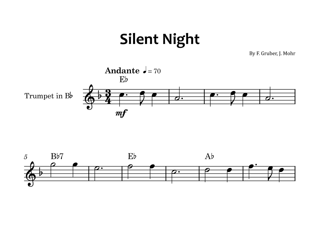 Silent Night - Trumpet solo with chord symbols (arr. Glauco Fernandes)