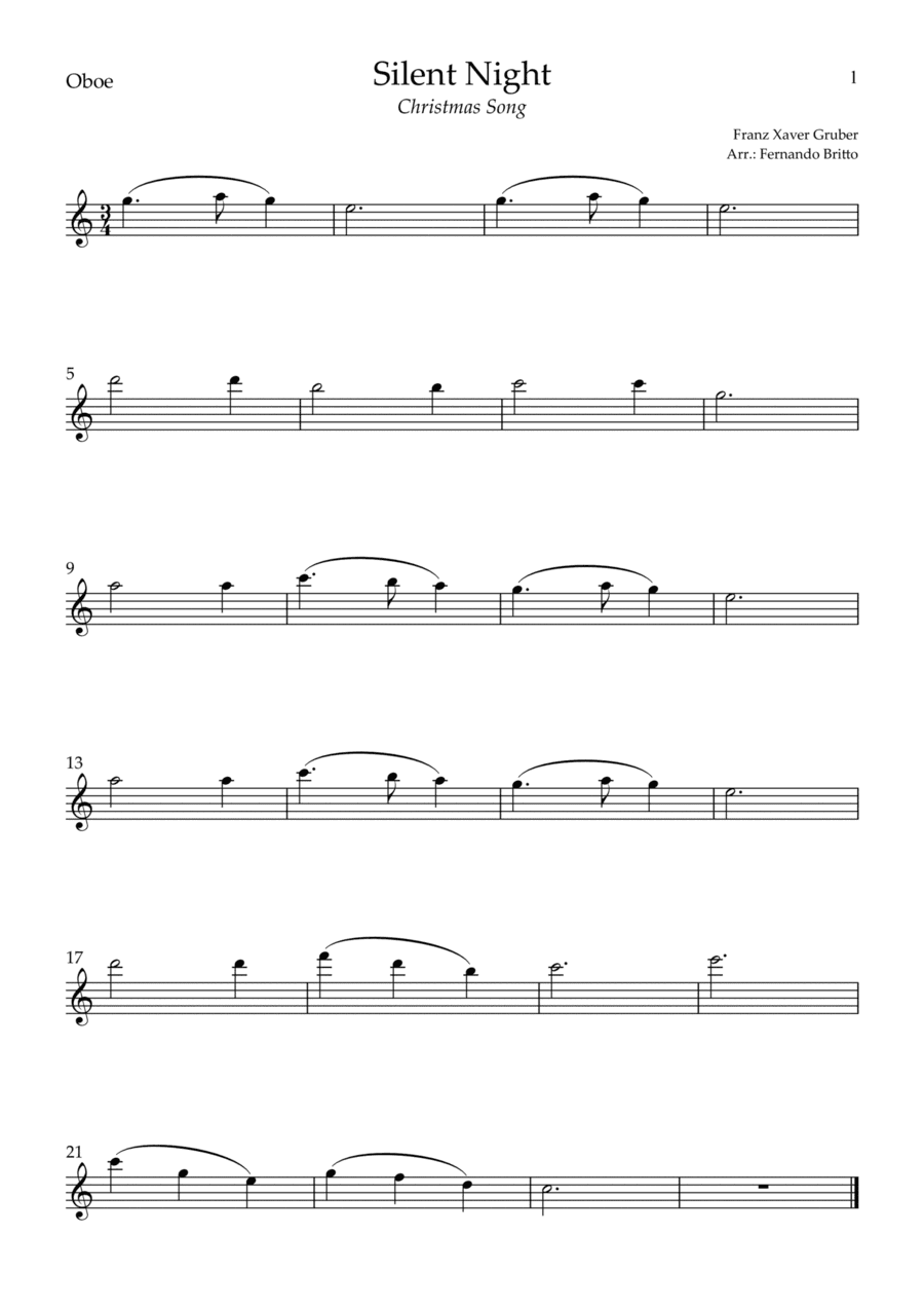 Silent Night (Christmas Song) for Oboe Solo (C Major) (arr. Fernando Britto)