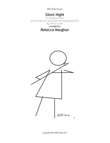 Flute,Piano - Level 2 - Digital Download SKU: A0.908186 Composed by Franz Xaver Gruber. Arranged by Rebecca Maughan Cook. Christmas,Sacred,Spiritual. Score and part. 11 pages. Rebecca Maughan Cook #6610625. Published by Rebecca Maughan Cook (A0.908186). This lovely flute arrangement is for early flutist who'd like to play a Christmas Solo.  It's very accessible for a younger person without sacrificing beauty.  I think it is 'reverently joyful.'This charming version of Silent Night has three verses.  The first verse is in the lower register.  The second verse is flute harmony climbing up to high D while the piano has the melody.  The third verse goes up to the middle register.   Set in the key of B-flat and then modulating to C major this gentle solo will encourage your flutist and bring Christmas into your home or church.When you purchase this you will receive the flute part, the piano part and the bonus solo flute part for a later intermediate flutist.   Please listen to the recording and enjoy.  This product was created by a member of ArrangeMe, Hal Leonard’s global self-publishing community of independent composers, arrangers, and songwriters. ArrangeMe allows for the publication of unique arrangements of both popular titles and original compositions from a wide variety of voices and backgrounds. About Digital Downloads Digital Downloads are downloadable sheet music files that can be viewed directly on your computer, tablet or mobile device. Once you download your digital sheet music, you can view and print it at home, school, or anywhere you want to make music, and you don’t have to be connected to the internet. Just purchase, download and play! PLEASE NOTE: Your Digital Download will have a watermark at the bottom of each page that will include your name, purchase date and number of copies purchased. You are only authorized to print the number of copies that you have purchased. You may not digitally distribute or print more copies than purchased for use (i.e., you may not print or digitally distribute individual copies to friends or students).