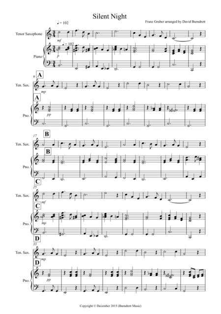 Silent Night for Tenor Saxophone and Piano (arr. David Burndrett)