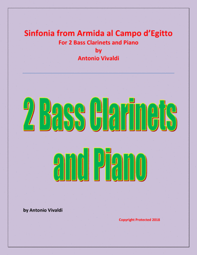 Instrumental Duet,Piano Bass Clarinet,Instrumental Duet,Piano - Level 5 - Digital Download SKU: A0.760450 Composed by Antonio Vivaldi. Arranged by Raymond Fenech. Baroque,Easter,Instructional,Multicultural,Standards,World. Score and parts. 25 pages. Raymond Fenech #3692659. Published by Raymond Fenech (A0.760450). Armida al campo d'Egitto is an opera in three acts by Antonio Vivaldi to a libretto by Giovanni Palazzo. It was first performed during the Carnival season of 1718 at the Teatro San Moisè in Venice. Unlike the more than 50 operas based on the romance of Rinaldo and Armida, Vivaldi's version starts during previous events before the war against the Crusaders. Armida was revived for the Carnival season of 1738, with much of the music rewritten, and arias by Leonardo Leo added. Act II of the original version of the opera is now lost. The Level is Early Advance and the duration is approximately 4.13 minutes. It could be played in any type of recital/concert. This product was created by a member of ArrangeMe, Hal Leonard’s global self-publishing community of independent composers, arrangers, and songwriters. ArrangeMe allows for the publication of unique arrangements of both popular titles and original compositions from a wide variety of voices and backgrounds. About Digital Downloads Digital Downloads are downloadable sheet music files that can be viewed directly on your computer, tablet or mobile device. Once you download your digital sheet music, you can view and print it at home, school, or anywhere you want to make music, and you don’t have to be connected to the internet. Just purchase, download and play! PLEASE NOTE: Your Digital Download will have a watermark at the bottom of each page that will include your name, purchase date and number of copies purchased. You are only authorized to print the number of copies that you have purchased. You may not digitally distribute or print more copies than purchased for use (i.e., you may not print or digitally distribute individual copies to friends or students).