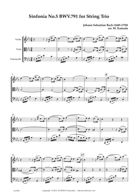 Sinfonia No.5 BWV.791 for String Trio (arr. Mikio Kamada)
