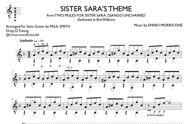 Solo Guitar - Level 1 - Digital Download SKU: A0.1140864 By Various Artists. By Ennio Morricone. Arranged by Paul Smith. 20th Century,Classical,Contemporary,Film/TV. Individual part. 1 pages. Conservatory Radio USA #741121. Published by Conservatory Radio USA (A0.1140864). Memorable Ennio Morricone excerpt serves as a Prelude and couples with my "Regan's Theme" arrangement, also available via search. This product was created by a member of ArrangeMe, Hal Leonard’s global self-publishing community of independent composers, arrangers, and songwriters. ArrangeMe allows for the publication of unique arrangements of both popular titles and original compositions from a wide variety of voices and backgrounds. About Digital Downloads Digital Downloads are downloadable sheet music files that can be viewed directly on your computer, tablet or mobile device. Once you download your digital sheet music, you can view and print it at home, school, or anywhere you want to make music, and you don’t have to be connected to the internet. Just purchase, download and play! PLEASE NOTE: Your Digital Download will have a watermark at the bottom of each page that will include your name, purchase date and number of copies purchased. You are only authorized to print the number of copies that you have purchased. You may not digitally distribute or print more copies than purchased for use (i.e., you may not print or digitally distribute individual copies to friends or students).