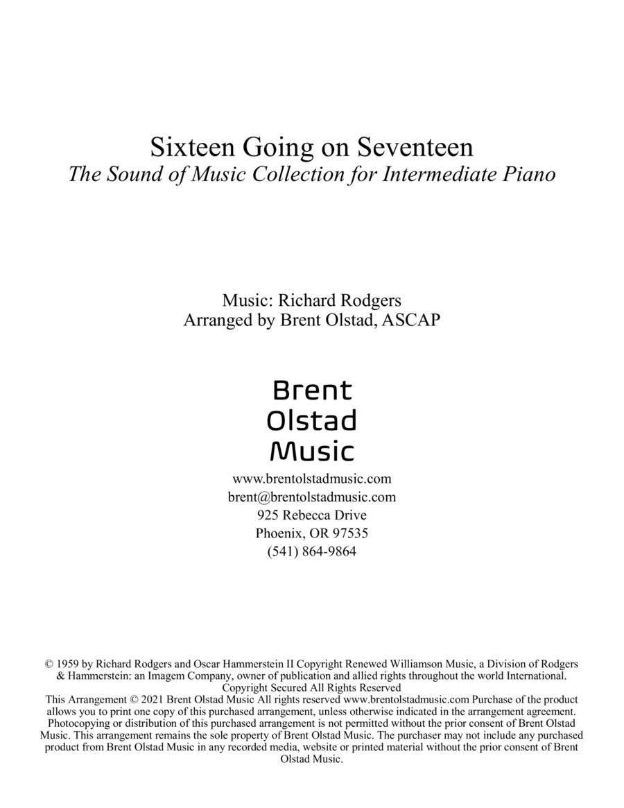 Sixteen Going On Seventeen (arr. Brent Olstad, ASCAP)
