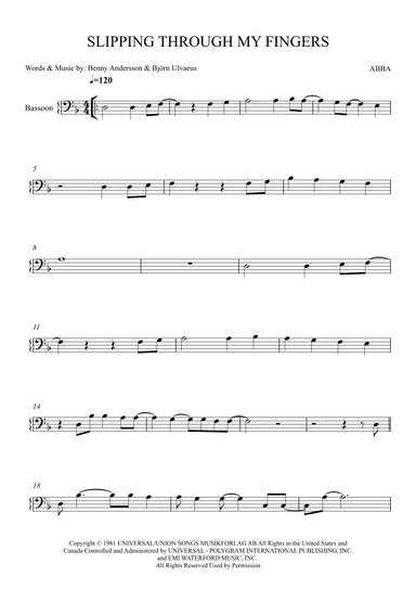 Piano,Vocal,Voice - Level 3 - Digital Download SKU: A0.1301875 By ABBA. By Benny Andersson and Bjorn Ulvaeus. Arranged by poon. Film/TV,Pop. Score. 5 pages. Poon #891471. Published by poon (A0.1301875). Slipping through my fingers - Mamma Mia! OST - For Piano Solo With Lyrics. This product was created by a member of ArrangeMe, Hal Leonard's global self-publishing community of independent composers, arrangers, and songwriters. ArrangeMe allows for the publication of unique arrangements of popular titles and original compositions from a variety of voices and backgrounds. The length, difficulty, and retail pricing are determined solely by the discretion of the person who arranged or composed it. About Digital Downloads Digital Downloads are downloadable sheet music files that can be viewed directly on your computer, tablet or mobile device. Once you download your digital sheet music, you can view and print it at home, school, or anywhere you want to make music, and you don’t have to be connected to the internet. Just purchase, download and play! PLEASE NOTE: Your Digital Download will have a watermark at the bottom of each page that will include your name, purchase date and number of copies purchased. You are only authorized to print the number of copies that you have purchased. You may not digitally distribute or print more copies than purchased for use (i.e., you may not print or digitally distribute individual copies to friends or students).