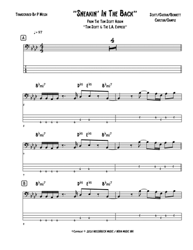 Bass Guitar - Level 3 - Digital Download SKU: A0.838872 By Tom Scott And The L.A. Express. By Joe Sample, John P. Geurin, Larry E. Carlton, Max R. Bennett, and Thomas Wright Scott. Arranged by Accubass. Contemporary. Score. 9 pages. Accubass #6698319. Published by Accubass (A0.838872). Complete bassline. This product was created by a member of ArrangeMe, Hal Leonard’s global self-publishing community of independent composers, arrangers, and songwriters. ArrangeMe allows for the publication of unique arrangements of both popular titles and original compositions from a wide variety of voices and backgrounds. About Digital Downloads Digital Downloads are downloadable sheet music files that can be viewed directly on your computer, tablet or mobile device. Once you download your digital sheet music, you can view and print it at home, school, or anywhere you want to make music, and you don’t have to be connected to the internet. Just purchase, download and play! PLEASE NOTE: Your Digital Download will have a watermark at the bottom of each page that will include your name, purchase date and number of copies purchased. You are only authorized to print the number of copies that you have purchased. You may not digitally distribute or print more copies than purchased for use (i.e., you may not print or digitally distribute individual copies to friends or students).