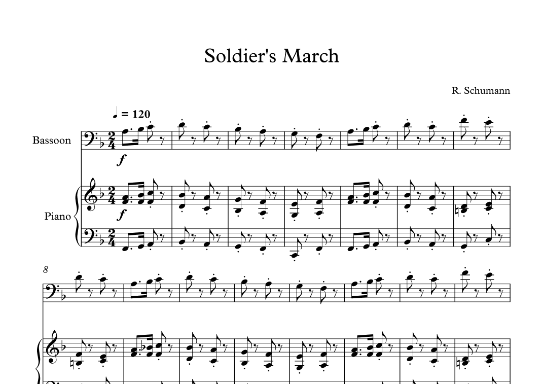 Soldier's March - Robert Schumann (Bassoon + Piano) (arr. Digital Book Music)
