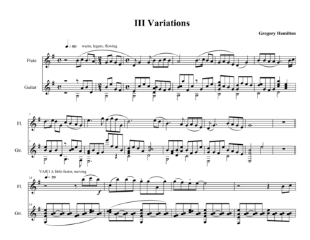 Sonata on Old American Tunes - for Flute and Guitar - Movement III Variations
