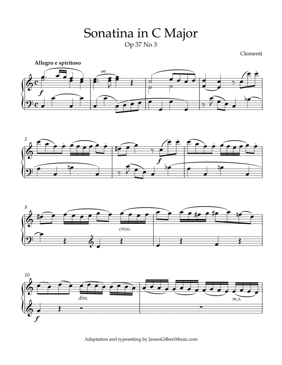 Sonatina Opus 37, Number 3 (arr. James Gilbert Music)