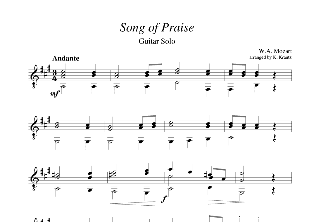 Song of Praise/Hymn Song for guitar solo) K. 623a (Austrian National Anthem) (arr. K. Krantz)