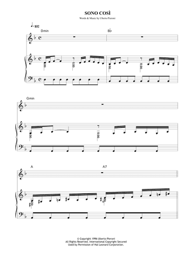 Guitar,Piano,Vocal,Voice - Level 4 - Digital Download SKU: A0.789213 By Franco Setti. By Uberto Pieroni. Arranged by Uberto Pieroni. 20th Century,Multicultural,Pop,Standards,World. Score. 7 pages. Editori vari #396464. Published by Editori vari (A0.789213). Canzone pop italiana. This product was created by a member of ArrangeMe, Hal Leonard's global self-publishing community of independent composers, arrangers, and songwriters. ArrangeMe allows for the publication of unique arrangements of popular titles and original compositions from a variety of voices and backgrounds. The length, difficulty, and retail pricing are determined solely by the discretion of the person who arranged or composed it. About Digital Downloads Digital Downloads are downloadable sheet music files that can be viewed directly on your computer, tablet or mobile device. Once you download your digital sheet music, you can view and print it at home, school, or anywhere you want to make music, and you don’t have to be connected to the internet. Just purchase, download and play! PLEASE NOTE: Your Digital Download will have a watermark at the bottom of each page that will include your name, purchase date and number of copies purchased. You are only authorized to print the number of copies that you have purchased. You may not digitally distribute or print more copies than purchased for use (i.e., you may not print or digitally distribute individual copies to friends or students).