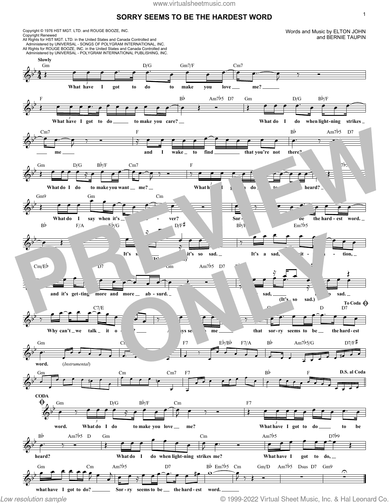 Digital sheet music for voice and other instruments, fake bookNOTE: chords, lead sheet and lyrics included.Publisher: Hal LeonardContributors to this music title:Bernie Taupin (writer)This item includes: PDF (digital sheet music to download and print), Interactive Sheet Music (for online playback, transposition and printing). You can transpose this music in any key.Instrumentation:voice and other instruments (fake book)Skill Level:intermediateGenre:popPages:1