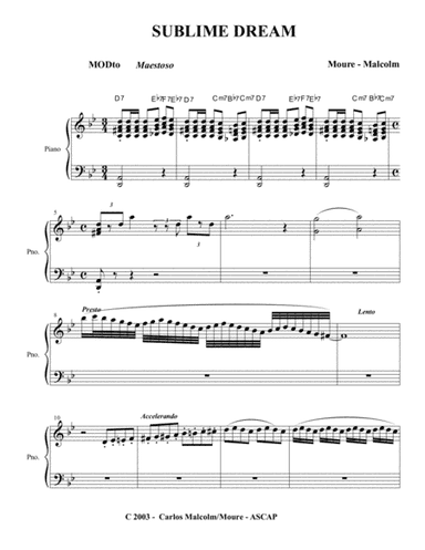 Piano Solo - Level 4 - Digital Download SKU: A0.993579 Composed by Carlos Malcolm. World. Score. 7 pages. CAM Music publishers LLC #4310569. Published by CAM Music publishers LLC (A0.993579). A Reggae Piano arrangement of A version of an orchestrated piece by the same title from Carlos Malcolm’ CD, "Ten Caribbean Piano Etudes". This product was created by a member of ArrangeMe, Hal Leonard’s global self-publishing community of independent composers, arrangers, and songwriters. ArrangeMe allows for the publication of unique arrangements of both popular titles and original compositions from a wide variety of voices and backgrounds. About Digital Downloads Digital Downloads are downloadable sheet music files that can be viewed directly on your computer, tablet or mobile device. Once you download your digital sheet music, you can view and print it at home, school, or anywhere you want to make music, and you don’t have to be connected to the internet. Just purchase, download and play! PLEASE NOTE: Your Digital Download will have a watermark at the bottom of each page that will include your name, purchase date and number of copies purchased. You are only authorized to print the number of copies that you have purchased. You may not digitally distribute or print more copies than purchased for use (i.e., you may not print or digitally distribute individual copies to friends or students).