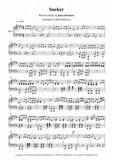 Interactive Download SKU: HX.449884 By Jonas Brothers. This edition: Interactive Download. Love,Pop,Rock. Big Note Piano. 4 pages. Duration 240. Published by Hal Leonard - Digital (HX.449884). About Interactive Downloads Interactive Downloads are dynamic sheet music files that can be viewed and altered directly in My Digital Library from any device. Interactive features include: playback, tempo control, transposition, melody instrument selection, adjustable note size, and full-screen viewing. Once you download your personalized sheet music, you can view and print it at home, school, or anywhere you want to make music, and you don’t have to be connected to the internet. Just purchase, download and play! PLEASE NOTE: All Interactive Downloads will have a watermark at the bottom of each page that will include your name, purchase date and number of copies purchased. You are only authorized to print the number of copies that you have purchased. You may not digitally distribute or print more copies than purchased for use (i.e., you may not print or digitally distribute individual copies to friends or students).