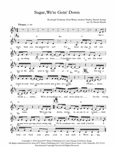 Sugar, We're Goin' Down (arr. Nicole Elayda)
