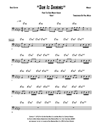 Digital Sheet Music for Sun Is Shining by Bob Marley scored for Lead Sheet with Guitar Grids; id:386685