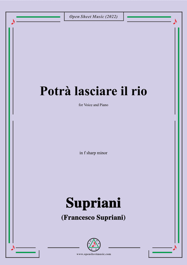 Piano,Vocal,Voice - Level 3 - Digital Download SKU: A0.1219761 Composed by Francesco Supriani. Arranged by OSM Press. Classical. Score. 9 pages. Open Cloud #816130. Published by Open Cloud (A0.1219761). This product is a digital sheet music in PDF format. The music was composed by Supriani (Francesco Supriani), 1678-1753, for Voice and Piano, published by More Sheet Music Press. This product was created by a member of ArrangeMe, Hal Leonard’s global self-publishing community of independent composers, arrangers, and songwriters. ArrangeMe allows for the publication of unique arrangements of both popular titles and original compositions from a wide variety of voices and backgrounds. About Digital Downloads Digital Downloads are downloadable sheet music files that can be viewed directly on your computer, tablet or mobile device. Once you download your digital sheet music, you can view and print it at home, school, or anywhere you want to make music, and you don’t have to be connected to the internet. Just purchase, download and play! PLEASE NOTE: Your Digital Download will have a watermark at the bottom of each page that will include your name, purchase date and number of copies purchased. You are only authorized to print the number of copies that you have purchased. You may not digitally distribute or print more copies than purchased for use (i.e., you may not print or digitally distribute individual copies to friends or students).
