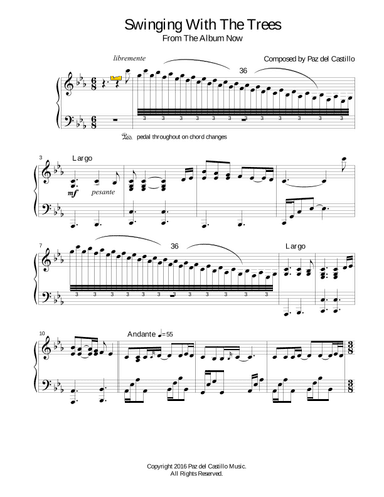 Instrumental Solo - Level 4 - Digital Download SKU: A0.1043773 By Paz del Castillo. By Paz del Castillo. Arranged by Paz del Castillo. Classical,Contemporary,Film/TV. Individual part. 5 pages. Paz del Castillo Music #648454. Published by Paz del Castillo Music (A0.1043773). One of the best tracks from NOW Album, feeling the movement of the trees surrounded you.It is a little dance when Auttum comes and the wind and tree leaves start to dance with you. This product was created by a member of ArrangeMe, Hal Leonard’s global self-publishing community of independent composers, arrangers, and songwriters. ArrangeMe allows for the publication of unique arrangements of both popular titles and original compositions from a wide variety of voices and backgrounds. About Digital Downloads Digital Downloads are downloadable sheet music files that can be viewed directly on your computer, tablet or mobile device. Once you download your digital sheet music, you can view and print it at home, school, or anywhere you want to make music, and you don’t have to be connected to the internet. Just purchase, download and play! PLEASE NOTE: Your Digital Download will have a watermark at the bottom of each page that will include your name, purchase date and number of copies purchased. You are only authorized to print the number of copies that you have purchased. You may not digitally distribute or print more copies than purchased for use (i.e., you may not print or digitally distribute individual copies to friends or students).