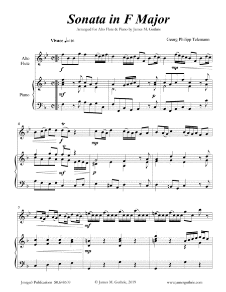 Telemann: Sonata in F Major for Alto Flute & Piano (arr. James M. Guthrie, ASCAP)