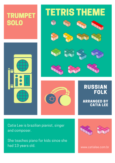 B-Flat Trumpet Solo - Level 1 - Digital Download SKU: A0.725034 Composed by Russian Folk. Arranged by Catia Lee. Children,Classical,Folk,Traditional,Video Game. Individual part. 3 pages. Catia Lee #333317. Published by Catia Lee (A0.725034). Tetris Theme for Trumpet Solo - Easy to play Bm Audio Am. This product was created by a member of ArrangeMe, Hal Leonard's global self-publishing community of independent composers, arrangers, and songwriters. ArrangeMe allows for the publication of unique arrangements of popular titles and original compositions from a variety of voices and backgrounds. The length, difficulty, and retail pricing are determined solely by the discretion of the person who arranged or composed it. About Digital Downloads Digital Downloads are downloadable sheet music files that can be viewed directly on your computer, tablet or mobile device. Once you download your digital sheet music, you can view and print it at home, school, or anywhere you want to make music, and you don’t have to be connected to the internet. Just purchase, download and play! PLEASE NOTE: Your Digital Download will have a watermark at the bottom of each page that will include your name, purchase date and number of copies purchased. You are only authorized to print the number of copies that you have purchased. You may not digitally distribute or print more copies than purchased for use (i.e., you may not print or digitally distribute individual copies to friends or students).