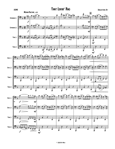 Brass Ensemble Euphonium,Tuba - Level 4 - Digital Download SKU: A0.759173 Composed by Victor Smalley. Arranged by Tim Olt. Jazz. Score and parts. 13 pages. Olt Music #5575711. Published by Olt Music (A0.759173). A clever and cute little rag from one of the lesser known composers of the turn of the 20th century. This product was created by a member of ArrangeMe, Hal Leonard’s global self-publishing community of independent composers, arrangers, and songwriters. ArrangeMe allows for the publication of unique arrangements of both popular titles and original compositions from a wide variety of voices and backgrounds. About Digital Downloads Digital Downloads are downloadable sheet music files that can be viewed directly on your computer, tablet or mobile device. Once you download your digital sheet music, you can view and print it at home, school, or anywhere you want to make music, and you don’t have to be connected to the internet. Just purchase, download and play! PLEASE NOTE: Your Digital Download will have a watermark at the bottom of each page that will include your name, purchase date and number of copies purchased. You are only authorized to print the number of copies that you have purchased. You may not digitally distribute or print more copies than purchased for use (i.e., you may not print or digitally distribute individual copies to friends or students).