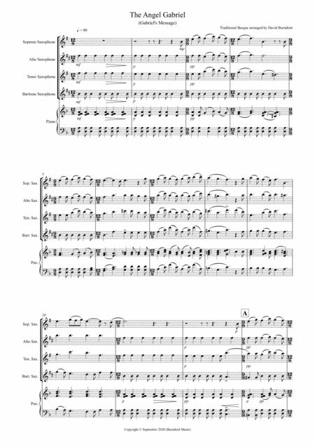 The Angel Gabriel for Saxophone Quartet (arr. David Burndrett)