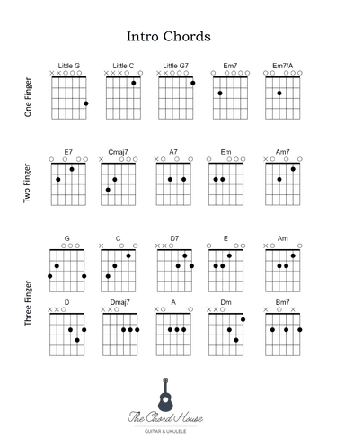 Guitar - Level 1 - Digital Download SKU: A0.1194241 By Sarah Adams. By Sarah Adams. Arranged by Sarah Adams. Instructional. Chords/Lyrics. 7 pages. The Chord House #793621. Published by The Chord House (A0.1194241). This collection of essential guitar chords is organized into chord families (by key and scale degree). Introductory chords are put in order of skill level: one, two, and three finger chords. Keys or Chord families included are: A, D, C, E, G, and the 90's style "stuck" G. Each Key or Chord Family is grouped by scale degree 1 - 6 along with bonus 7th chords. 7 pages total. This product was created by a member of ArrangeMe, Hal Leonard’s global self-publishing community of independent composers, arrangers, and songwriters. ArrangeMe allows for the publication of unique arrangements of both popular titles and original compositions from a wide variety of voices and backgrounds. About Digital Downloads Digital Downloads are downloadable sheet music files that can be viewed directly on your computer, tablet or mobile device. Once you download your digital sheet music, you can view and print it at home, school, or anywhere you want to make music, and you don’t have to be connected to the internet. Just purchase, download and play! PLEASE NOTE: Your Digital Download will have a watermark at the bottom of each page that will include your name, purchase date and number of copies purchased. You are only authorized to print the number of copies that you have purchased. You may not digitally distribute or print more copies than purchased for use (i.e., you may not print or digitally distribute individual copies to friends or students).
