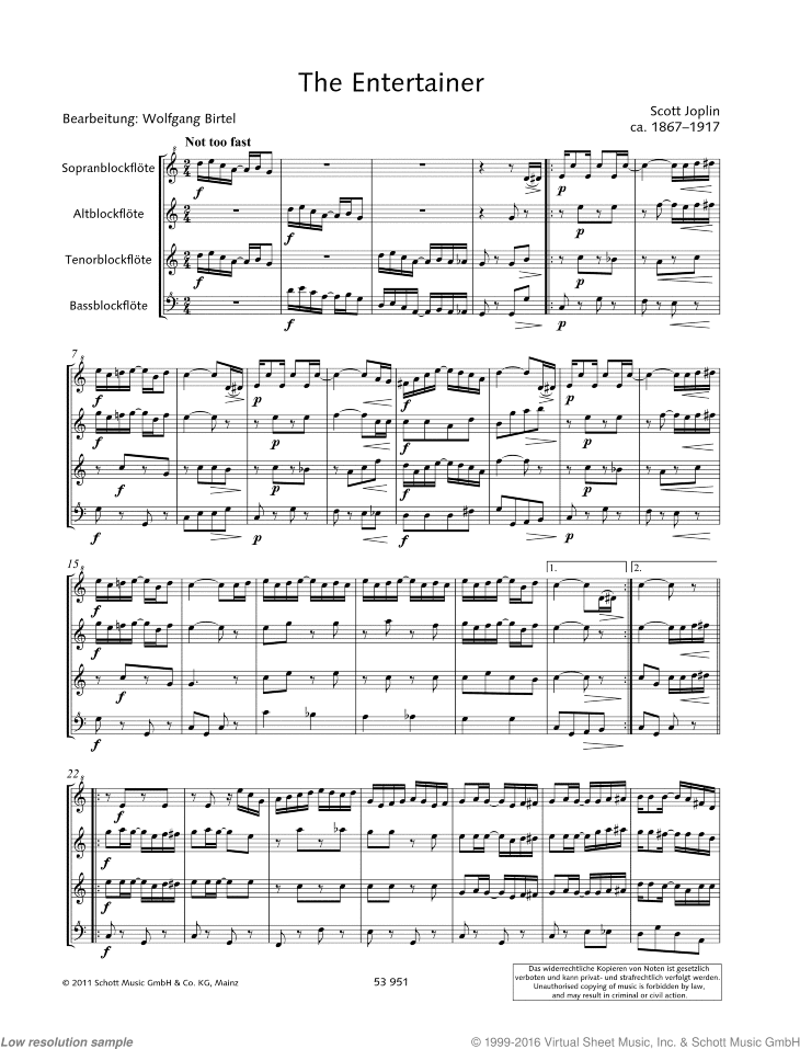 Digital sheet music for recorder quartet, from "4 Ragtimes", Arrangement by Birtel, Wolfgang.Publisher: SchottThis item includes: PDF (digital sheet music to download and print)Instrumentation:recorder quartetSkill Level:easy/intermediateGenre:classical, jazzPages:11