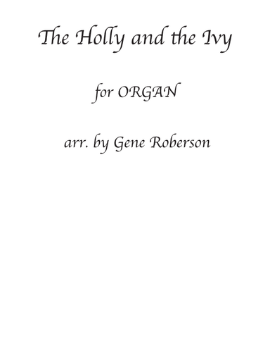 Organ - Level 5 - Digital Download SKU: A0.848980 Composed by Traditional Carol. Arranged by Gene Roberson. 20th Century,Christmas,Concert,Spiritual. Score. 6 pages. Gene Roberson #6607299. Published by Gene Roberson (A0.848980). Organ solo for recital Church service Prelude Concert  French style harmonies.  Modern Advanced players . This product was created by a member of ArrangeMe, Hal Leonard’s global self-publishing community of independent composers, arrangers, and songwriters. ArrangeMe allows for the publication of unique arrangements of both popular titles and original compositions from a wide variety of voices and backgrounds. About Digital Downloads Digital Downloads are downloadable sheet music files that can be viewed directly on your computer, tablet or mobile device. Once you download your digital sheet music, you can view and print it at home, school, or anywhere you want to make music, and you don’t have to be connected to the internet. Just purchase, download and play! PLEASE NOTE: Your Digital Download will have a watermark at the bottom of each page that will include your name, purchase date and number of copies purchased. You are only authorized to print the number of copies that you have purchased. You may not digitally distribute or print more copies than purchased for use (i.e., you may not print or digitally distribute individual copies to friends or students).