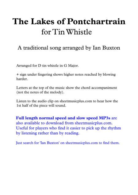 The Lakes of Pontchartrain for Tin Whistle with Chords (arr. Ian Buxton)