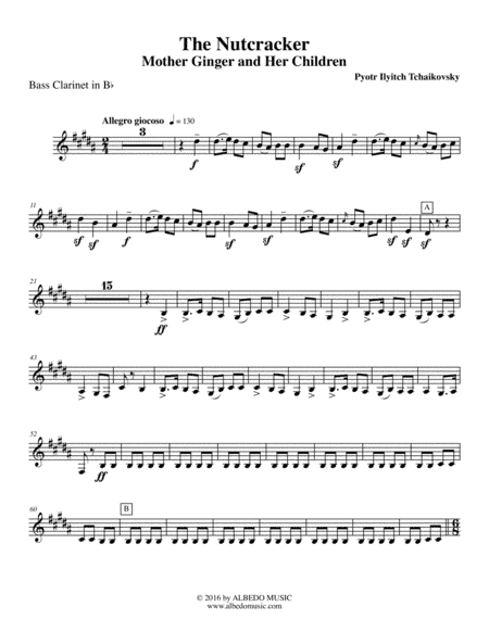 The Nutcracker, Mother Ginger and Her Children, Polichinelles - Bass Clarinet in Bb (Transposed Part (arr. Doug Clyde)