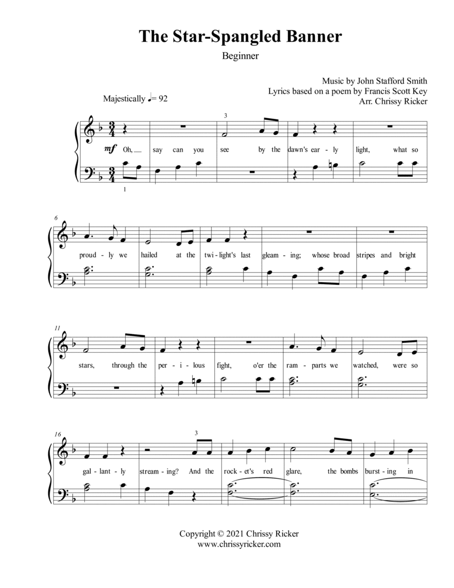 The Star-Spangled Banner - beginner piano (with lyrics) (arr. Chrissy Ricker)