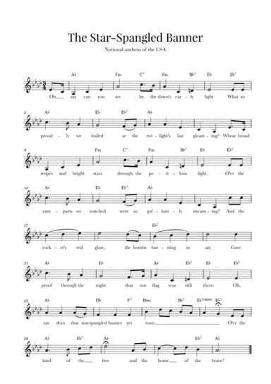 Small Ensemble Flute,Harpsichord,Oboe,Organ,Piano,Violin,Voice - Level 1 - Digital Download SKU: A0.570894 Composed by John Stafford Smith. Arranged by Cadenza Editions. Holiday,Patriotic. Score and parts. 1 pages. Cadenza Editions #5286417. Published by Cadenza Editions (A0.570894). This product was created by a member of ArrangeMe, Hal Leonard’s global self-publishing community of independent composers, arrangers, and songwriters. ArrangeMe allows for the publication of unique arrangements of both popular titles and original compositions from a wide variety of voices and backgrounds. About Digital Downloads Digital Downloads are downloadable sheet music files that can be viewed directly on your computer, tablet or mobile device. Once you download your digital sheet music, you can view and print it at home, school, or anywhere you want to make music, and you don’t have to be connected to the internet. Just purchase, download and play! PLEASE NOTE: Your Digital Download will have a watermark at the bottom of each page that will include your name, purchase date and number of copies purchased. You are only authorized to print the number of copies that you have purchased. You may not digitally distribute or print more copies than purchased for use (i.e., you may not print or digitally distribute individual copies to friends or students).