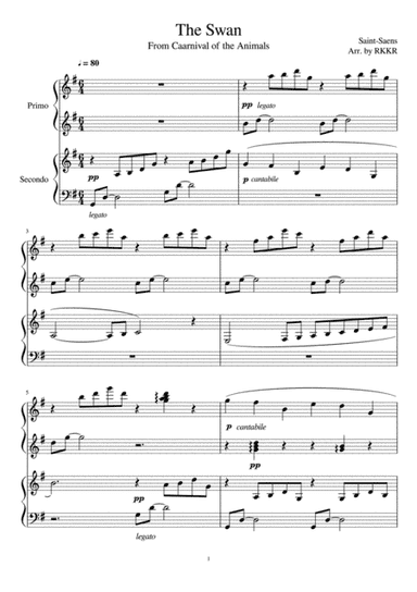 Instrumental Duet Instrumental Duet,Piano - Level 3 - Digital Download SKU: A0.780209 Composed by Camille Saint-Saens. Arranged by RKKR. Concert,Romantic Period. Score and parts. 4 pages. RKKR #4278351. Published by RKKR (A0.780209). This is from Carnival of the animals. arranged to 4 hands piano. Both parts play Melody. Primo is easier than Second.Duration is 2:03. . This product was created by a member of ArrangeMe, Hal Leonard’s global self-publishing community of independent composers, arrangers, and songwriters. ArrangeMe allows for the publication of unique arrangements of both popular titles and original compositions from a wide variety of voices and backgrounds. About Digital Downloads Digital Downloads are downloadable sheet music files that can be viewed directly on your computer, tablet or mobile device. Once you download your digital sheet music, you can view and print it at home, school, or anywhere you want to make music, and you don’t have to be connected to the internet. Just purchase, download and play! PLEASE NOTE: Your Digital Download will have a watermark at the bottom of each page that will include your name, purchase date and number of copies purchased. You are only authorized to print the number of copies that you have purchased. You may not digitally distribute or print more copies than purchased for use (i.e., you may not print or digitally distribute individual copies to friends or students).