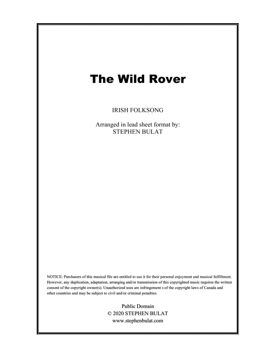 The Wild Rover (Irish Folk Song) - Lead sheet (key of E) (arr. Stephen Bulat)