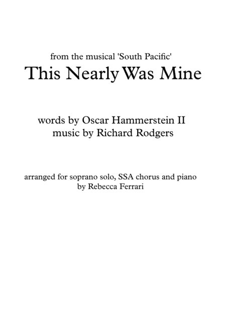 This Nearly Was Mine from South Pacific (arr. Rebecca Ferrari)