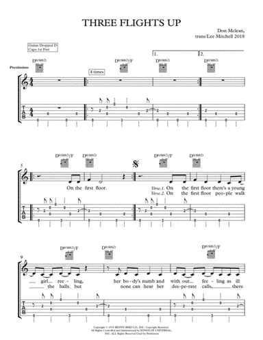 Instrumental Duet Guitar,Instrumental Duet,Voice - Level 2 - Digital Download SKU: A0.826458 By Don McLean. By Don McLean. Arranged by Lee Mitchell. Contemporary. Score and parts. 8 pages. Lee Mitchell #4110687. Published by Lee Mitchell (A0.826458). This product was created by a member of ArrangeMe, Hal Leonard's global self-publishing community of independent composers, arrangers, and songwriters. ArrangeMe allows for the publication of unique arrangements of popular titles and original compositions from a variety of voices and backgrounds. The length, difficulty, and retail pricing are determined solely by the discretion of the person who arranged or composed it. About Digital Downloads Digital Downloads are downloadable sheet music files that can be viewed directly on your computer, tablet or mobile device. Once you download your digital sheet music, you can view and print it at home, school, or anywhere you want to make music, and you don’t have to be connected to the internet. Just purchase, download and play! PLEASE NOTE: Your Digital Download will have a watermark at the bottom of each page that will include your name, purchase date and number of copies purchased. You are only authorized to print the number of copies that you have purchased. You may not digitally distribute or print more copies than purchased for use (i.e., you may not print or digitally distribute individual copies to friends or students).