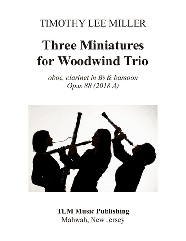 Woodwind Ensemble,Woodwind Trio - Level 4 - Digital Download SKU: A0.990397 Composed by Timothy Lee Miller. Classical,Contemporary,Contest,Festival. 60 pages. TLM Music Publishing #595999. Published by TLM Music Publishing (A0.990397). Available for any of the following eleven different woodwind combinations: oboe, clarinet, bassoon; oboe, clarinet, bass clarinet; 2 oboes and bassoon; oboe, English horn, bassoon; oboe, English horn, bass clarinet; flute, clarinet, bassoon; flute, clarinet, bass clarinet; flute, oboe, bassoon; flute, oboe, bass clarinet; flute, English horn, bassoon; flute, English horn, bass clarinet. This product was created by a member of ArrangeMe, Hal Leonard’s global self-publishing community of independent composers, arrangers, and songwriters. ArrangeMe allows for the publication of unique arrangements of both popular titles and original compositions from a wide variety of voices and backgrounds. About Digital Downloads Digital Downloads are downloadable sheet music files that can be viewed directly on your computer, tablet or mobile device. Once you download your digital sheet music, you can view and print it at home, school, or anywhere you want to make music, and you don’t have to be connected to the internet. Just purchase, download and play! PLEASE NOTE: Your Digital Download will have a watermark at the bottom of each page that will include your name, purchase date and number of copies purchased. You are only authorized to print the number of copies that you have purchased. You may not digitally distribute or print more copies than purchased for use (i.e., you may not print or digitally distribute individual copies to friends or students).