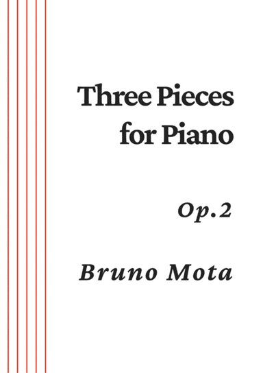 Piano Solo - Level 4 - Digital Download SKU: A0.1017063 Composed by Bruno Mota. 20th Century,Concert,Contemporary,Standards. Score. 14 pages. Bruno Mota #6038331. Published by Bruno Mota (A0.1017063). Three Pieces for Piano solo.I. A minor II. Ab minor  and III. E minor. This product was created by a member of ArrangeMe, Hal Leonard's global self-publishing community of independent composers, arrangers, and songwriters. ArrangeMe allows for the publication of unique arrangements of popular titles and original compositions from a variety of voices and backgrounds. The length, difficulty, and retail pricing are determined solely by the discretion of the person who arranged or composed it. About Digital Downloads Digital Downloads are downloadable sheet music files that can be viewed directly on your computer, tablet or mobile device. Once you download your digital sheet music, you can view and print it at home, school, or anywhere you want to make music, and you don’t have to be connected to the internet. Just purchase, download and play! PLEASE NOTE: Your Digital Download will have a watermark at the bottom of each page that will include your name, purchase date and number of copies purchased. You are only authorized to print the number of copies that you have purchased. You may not digitally distribute or print more copies than purchased for use (i.e., you may not print or digitally distribute individual copies to friends or students).