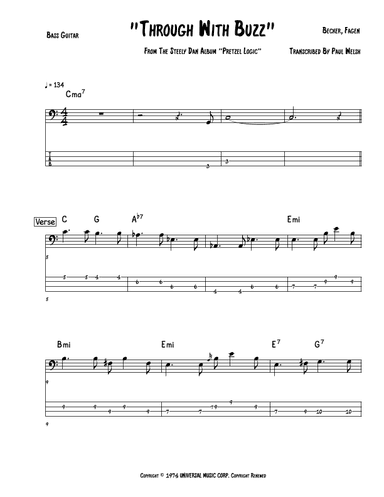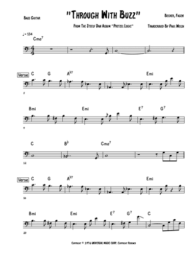 Bass Guitar,Instrumental Solo - Level 3 - Digital Download SKU: A0.838864 By Steely Dan. By Donald Fagen and Walter Becker. Arranged by Accubass. Pop,Rock. Individual part. 2 pages. Accubass #6692021. Published by Accubass (A0.838864). Complete bassline. This product was created by a member of ArrangeMe, Hal Leonard’s global self-publishing community of independent composers, arrangers, and songwriters. ArrangeMe allows for the publication of unique arrangements of both popular titles and original compositions from a wide variety of voices and backgrounds. About Digital Downloads Digital Downloads are downloadable sheet music files that can be viewed directly on your computer, tablet or mobile device. Once you download your digital sheet music, you can view and print it at home, school, or anywhere you want to make music, and you don’t have to be connected to the internet. Just purchase, download and play! PLEASE NOTE: Your Digital Download will have a watermark at the bottom of each page that will include your name, purchase date and number of copies purchased. You are only authorized to print the number of copies that you have purchased. You may not digitally distribute or print more copies than purchased for use (i.e., you may not print or digitally distribute individual copies to friends or students).