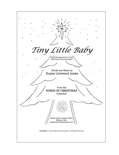 Choral Choir,Choral (SATB) - Level 3 - Digital Download SKU: A0.1116902 Composed by Duane Lhomond Jones. Arranged by Duane Lhomond Jones. Christian,Christmas,Holiday,Praise & Worship,Religious. 5 pages. Snake Creek Creative Works #718558. Published by Snake Creek Creative Works (A0.1116902). SATB arrangement for choir. Fast moving piece tells the original Christmas story with a calypso feel. From the "Songs of Christmas" collection. This product was created by a member of ArrangeMe, Hal Leonard’s global self-publishing community of independent composers, arrangers, and songwriters. ArrangeMe allows for the publication of unique arrangements of both popular titles and original compositions from a wide variety of voices and backgrounds. About Digital Downloads Digital Downloads are downloadable sheet music files that can be viewed directly on your computer, tablet or mobile device. Once you download your digital sheet music, you can view and print it at home, school, or anywhere you want to make music, and you don’t have to be connected to the internet. Just purchase, download and play! PLEASE NOTE: Your Digital Download will have a watermark at the bottom of each page that will include your name, purchase date and number of copies purchased. You are only authorized to print the number of copies that you have purchased. You may not digitally distribute or print more copies than purchased for use (i.e., you may not print or digitally distribute individual copies to friends or students).