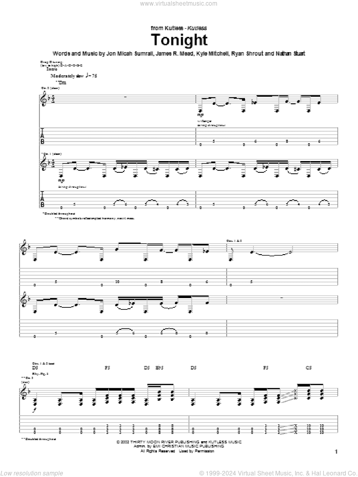 Digital sheet music for guitar (tablature)NOTE: Tablature included, lyrics may be included (please check the first page above before to buy this item to see what's included)Publisher: Hal LeonardContributors to this music title:James R. Mead (writer)Jon Micah Sumrall (writer)Kyle Mitchell (writer)This item includes: PDF (digital sheet music to download and print)Instrumentation:guitar (tablature)Format:digital sheet music, tabSkill Level:intermediateGenre:christianPages:9