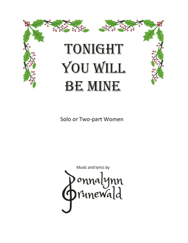 Vocal Solo,Voice - Level 2 - Digital Download SKU: A0.1008187 Composed by Donnalynn Grunewald. Christian,Christmas,Sacred. 8 pages. Donnalynn Grunewald #6472129. Published by Donnalynn Grunewald (A0.1008187). A sweet and tender lullaby. Mary, knowing she will have to share her son with the world, cherishes the time she has with him in the first hours after his birth. "Someday the world will call you King. They'll worship you and praises sing. Though sadness may tomorrow bring - tonight you'll still be mine." The lullaby chorus features an optional alto harmony. This product was created by a member of ArrangeMe, Hal Leonard’s global self-publishing community of independent composers, arrangers, and songwriters. ArrangeMe allows for the publication of unique arrangements of both popular titles and original compositions from a wide variety of voices and backgrounds. About Digital Downloads Digital Downloads are downloadable sheet music files that can be viewed directly on your computer, tablet or mobile device. Once you download your digital sheet music, you can view and print it at home, school, or anywhere you want to make music, and you don’t have to be connected to the internet. Just purchase, download and play! PLEASE NOTE: Your Digital Download will have a watermark at the bottom of each page that will include your name, purchase date and number of copies purchased. You are only authorized to print the number of copies that you have purchased. You may not digitally distribute or print more copies than purchased for use (i.e., you may not print or digitally distribute individual copies to friends or students).