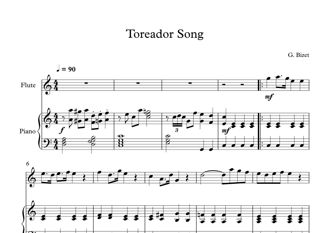 Toreador Song - Georges Bizet (Flute + Piano) (arr. Digital Book Music)