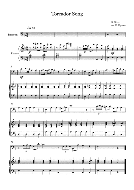Toreador Song, Georges Bizet, For Bassoon & Piano (arr. Eugene Egorov)