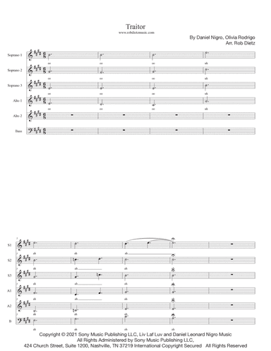 Choral Choir,Choral (SA) - Level 3 - Digital Download SKU: A0.1281458 By Olivia Rodrigo. By Daniel Nigro and Olivia Rodrigo. Arranged by BK Riha / Brandy Kay Riha. A Cappella,Pop. 9 pages. BK Riha #872802. Published by BK Riha (A0.1281458). Purchase learning tracks at bkmakesmusic.comRanges:Sop C4-Eb5Alto Ab3-C5. This product was created by a member of ArrangeMe, Hal Leonard’s global self-publishing community of independent composers, arrangers, and songwriters. ArrangeMe allows for the publication of unique arrangements of both popular titles and original compositions from a wide variety of voices and backgrounds. About Digital Downloads Digital Downloads are downloadable sheet music files that can be viewed directly on your computer, tablet or mobile device. Once you download your digital sheet music, you can view and print it at home, school, or anywhere you want to make music, and you don’t have to be connected to the internet. Just purchase, download and play! PLEASE NOTE: Your Digital Download will have a watermark at the bottom of each page that will include your name, purchase date and number of copies purchased. You are only authorized to print the number of copies that you have purchased. You may not digitally distribute or print more copies than purchased for use (i.e., you may not print or digitally distribute individual copies to friends or students).