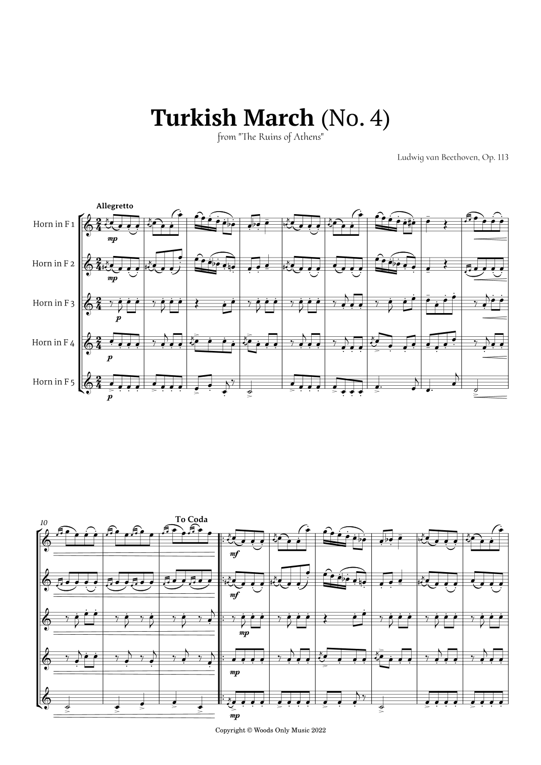 Turkish March by Beethoven for French Horn Quintet (arr. Ander)