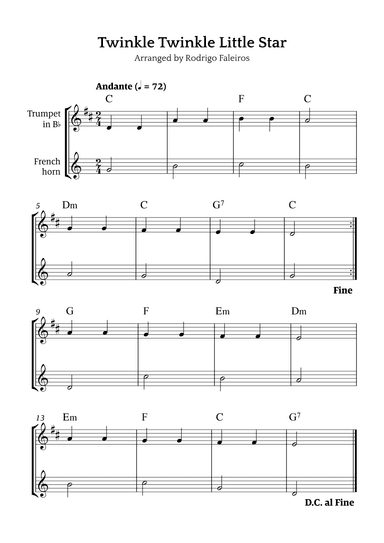Digital Sheet Music for Twinkle, Twinkle Little Star - Horn by Wolfgang Amadeus Mozart, Bryan Doughty scored for Brass Quartet; id:317691